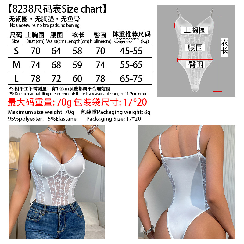 - Main Fabric: Soft stretch satin + sheer floral lace