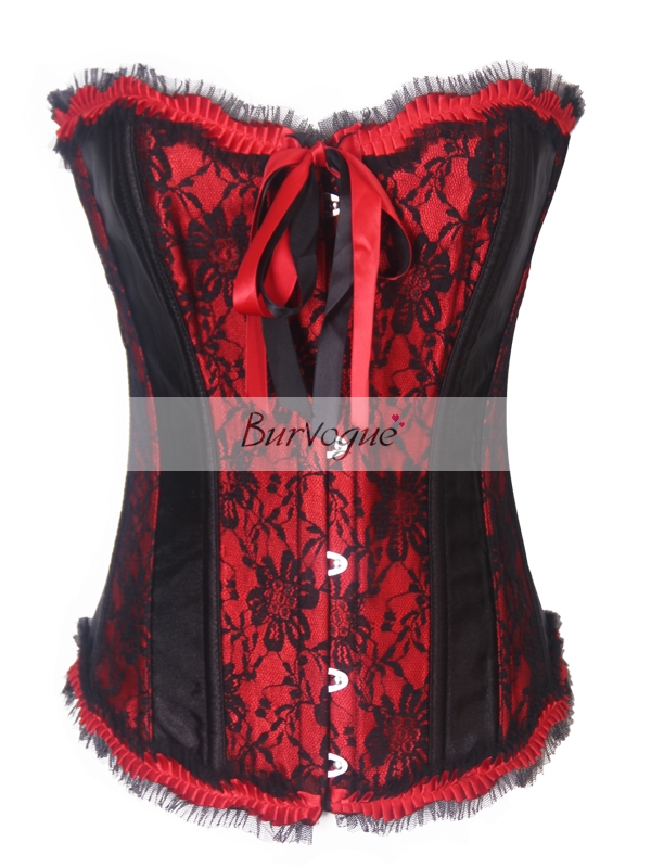 Gothic Steel boned corset top! Delicate design---satin combine with lace! Features steel bones and back shelter and strong string tie-up!