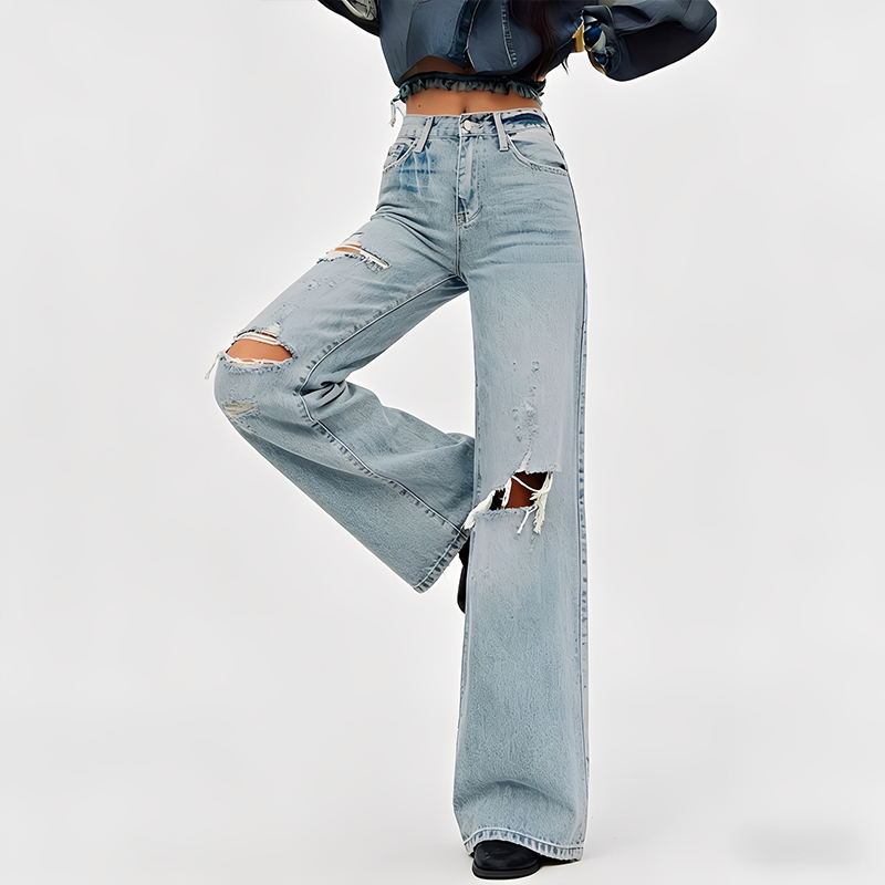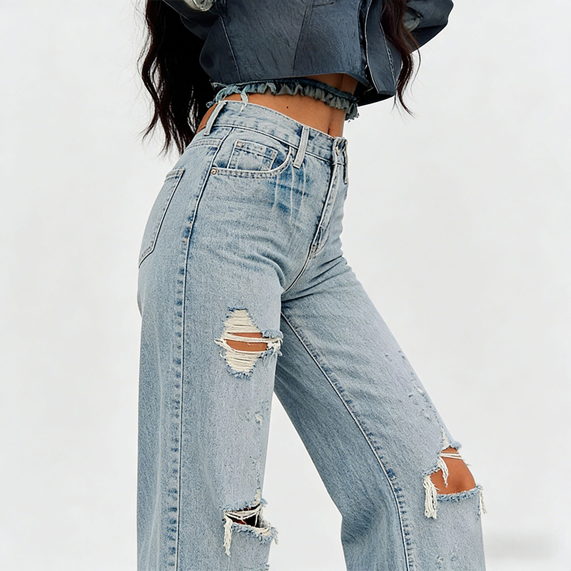Women's Cool Ripped High-Waisted Straight-Leg Jeans-40201